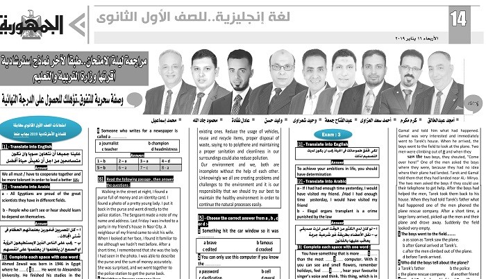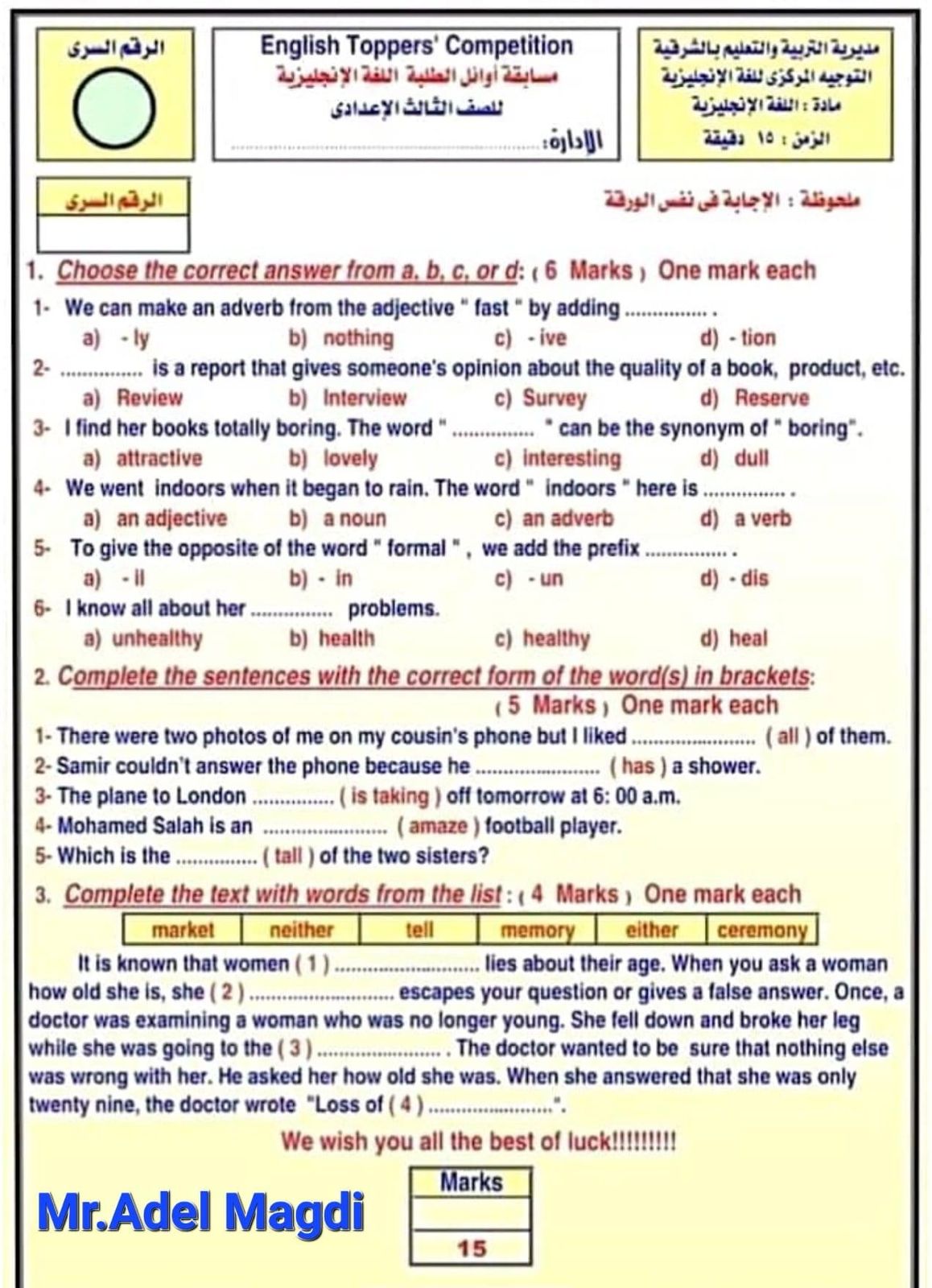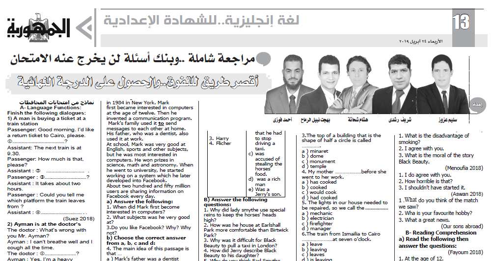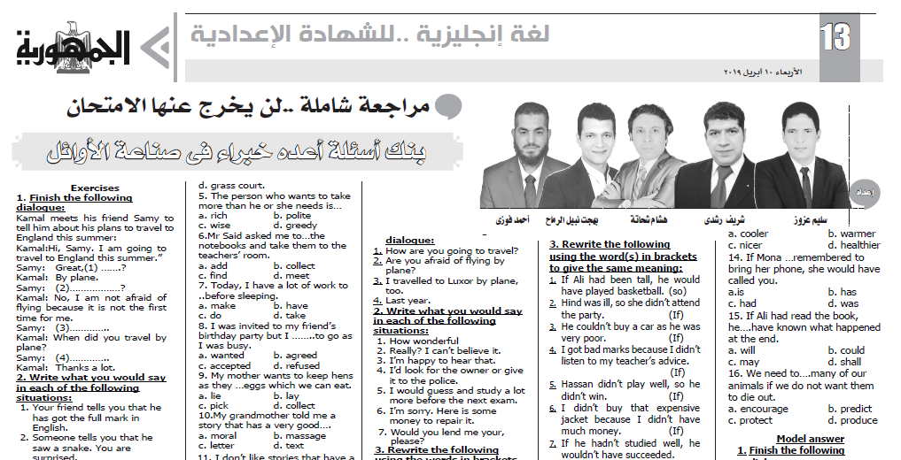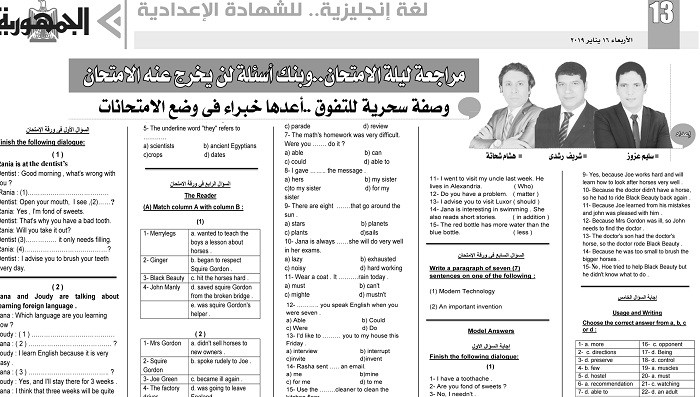 أسئلة لغة انجليزية لطلاب الشهادة الإعدادية