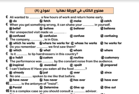 اختبار لغة انجليزية واجابته من متعدد للثانوية العامة