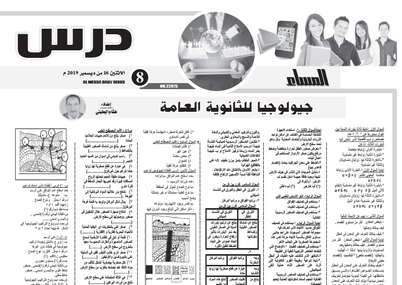 جيولوجيا ولغة انجليزية وعلم اجتماع للثانوية العامة وعلوم للشهادة الاعدادية
