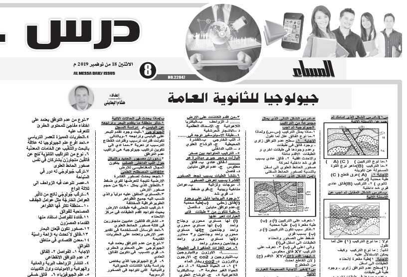 جيولوجيا ولغة انجليزية وعلم اجتماع للثانوية وعلوم للشهادة الاعدادية