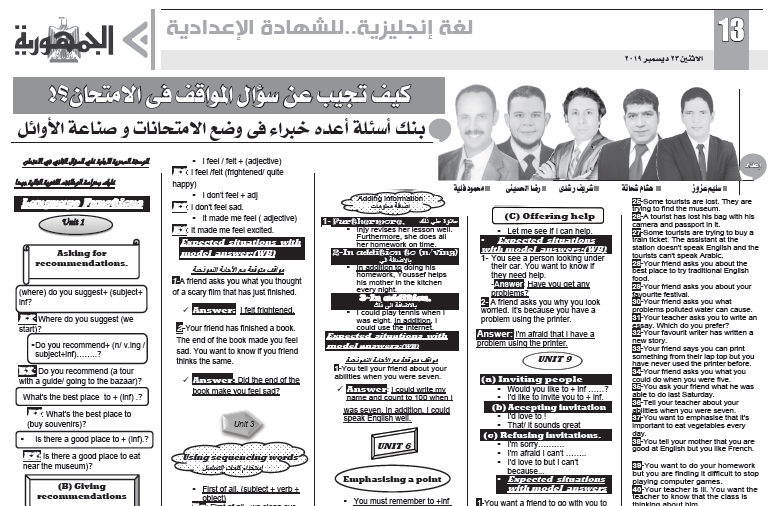 مراجعة لغة انجليزية لأول ثلاث وحدات¨ للشهادة الاعدادية