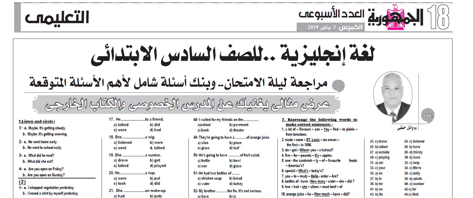 مراجعة لغة انجليزية للصف السادس الابتدائى
