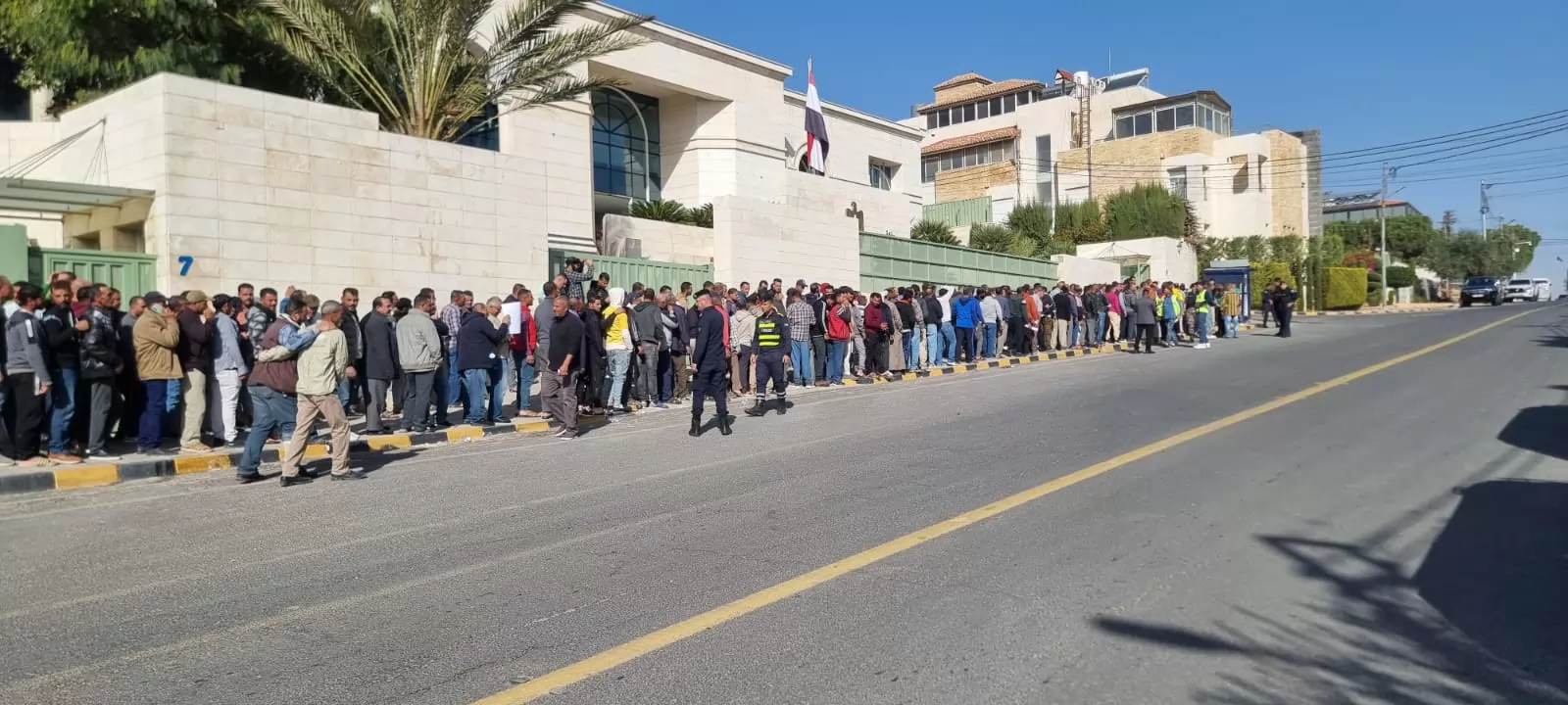 الجالية المصرية بالأردن تحتشد أمام سفارتها للمشاركة في انتخابات النواب
