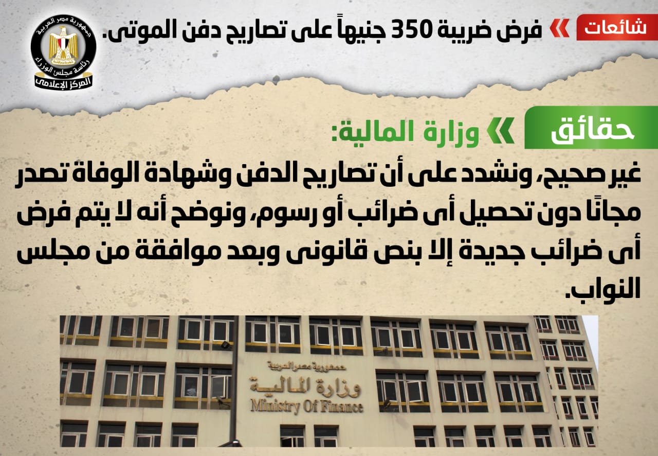 الحكومة تكشف حقيقة فرض ضريبة 350 جنيهاً على تصاريح دفن الموتى