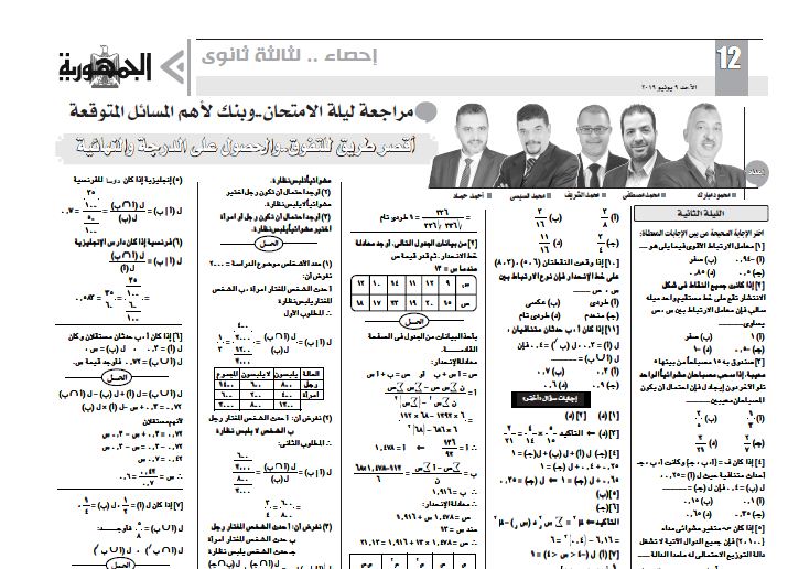 اهم المسائل المتوقعة فى امتحان مادة الاحصاء للثانوية العامة 2019