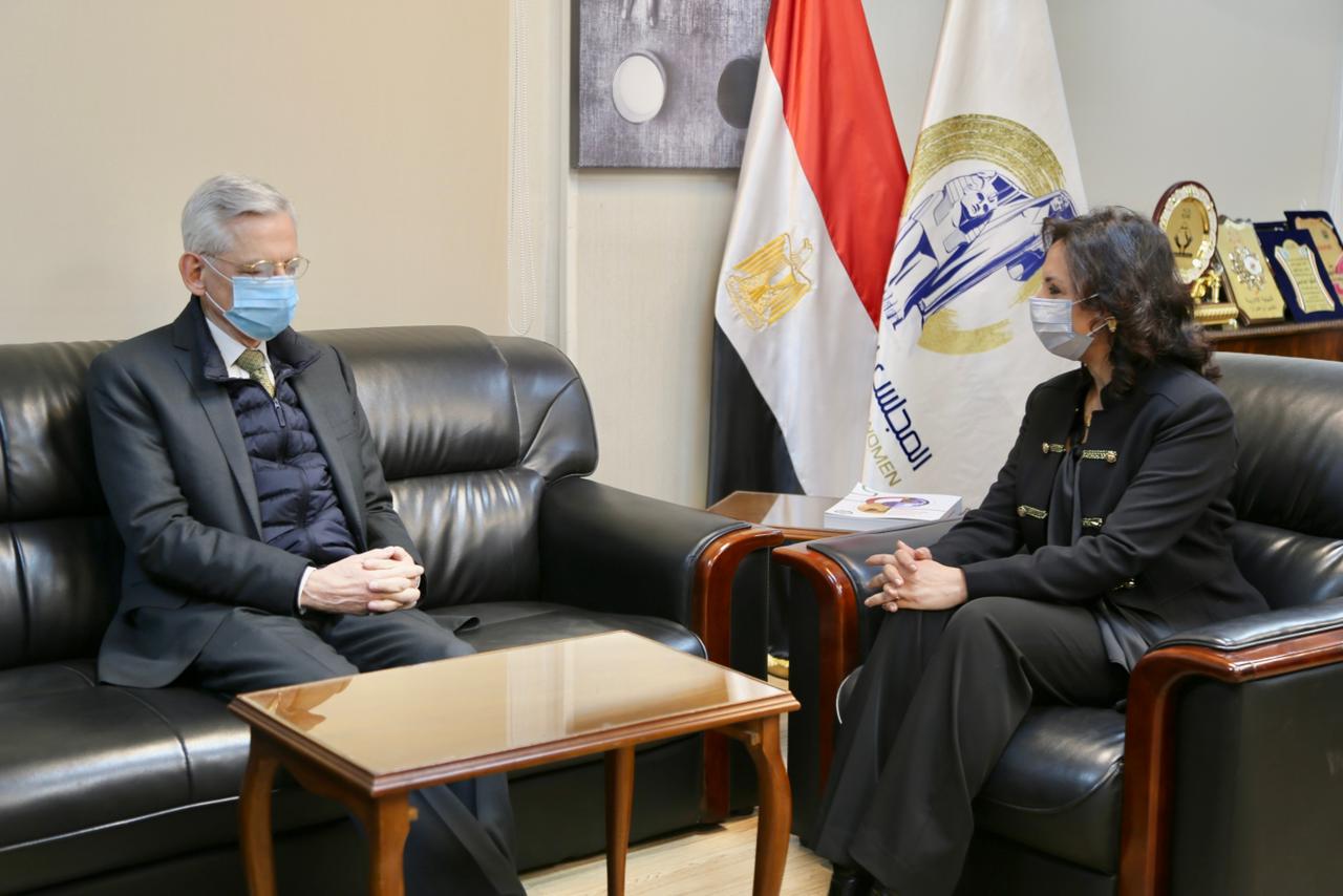 مايا مرسى تستقبل الامين العام للمنظمة الدولية لأصحاب الأعمال لبحث تمكين المرأة فى العمل