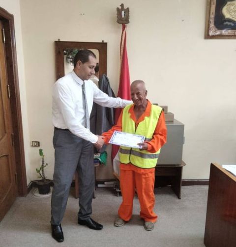 «فرغلي»يكرم عامل نظافة لأمانته فى رد مبلغ ٤٤ ألف جنيه