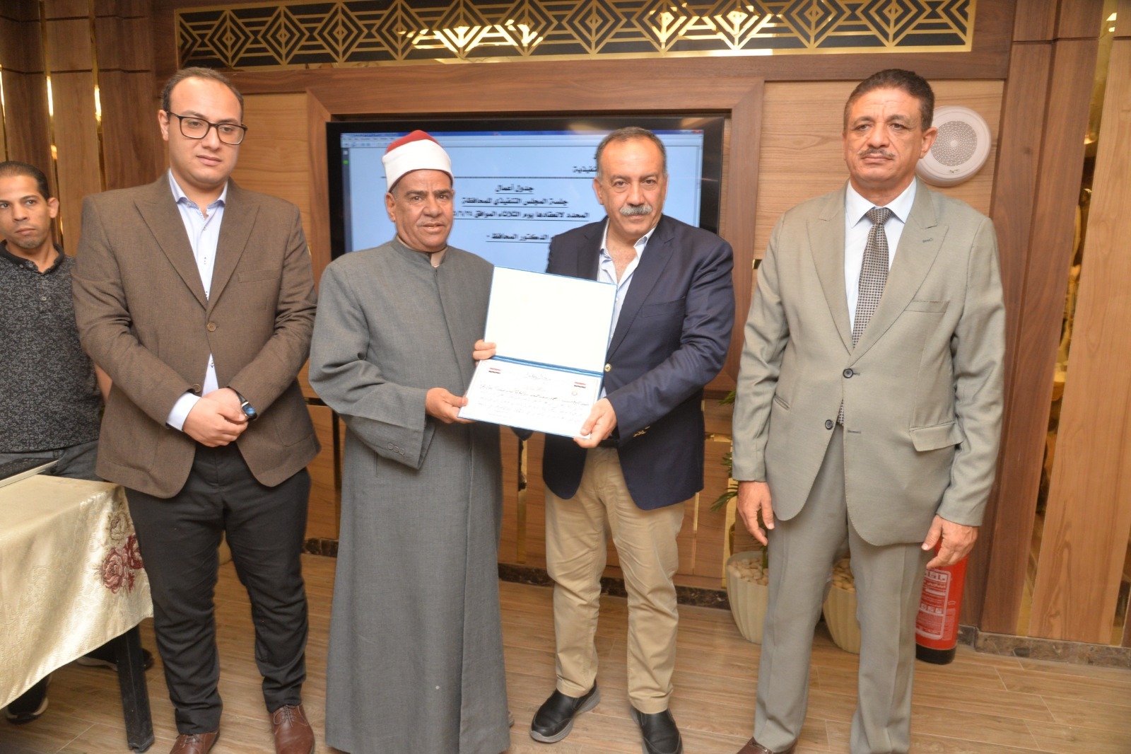 محافظ أسيوط يكرم صاحب إحدى شركات الملابس الجاهزة
