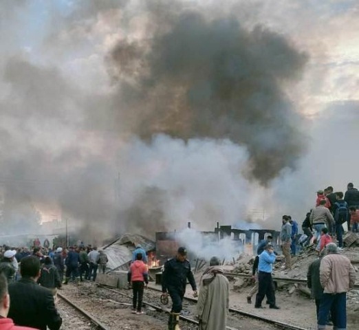 محافظ الشرقية يؤكد :الحريق التهم 17 محل تجارى وباكية وان السكة الحديد آمنة تماما وبعيدة عن الحريق