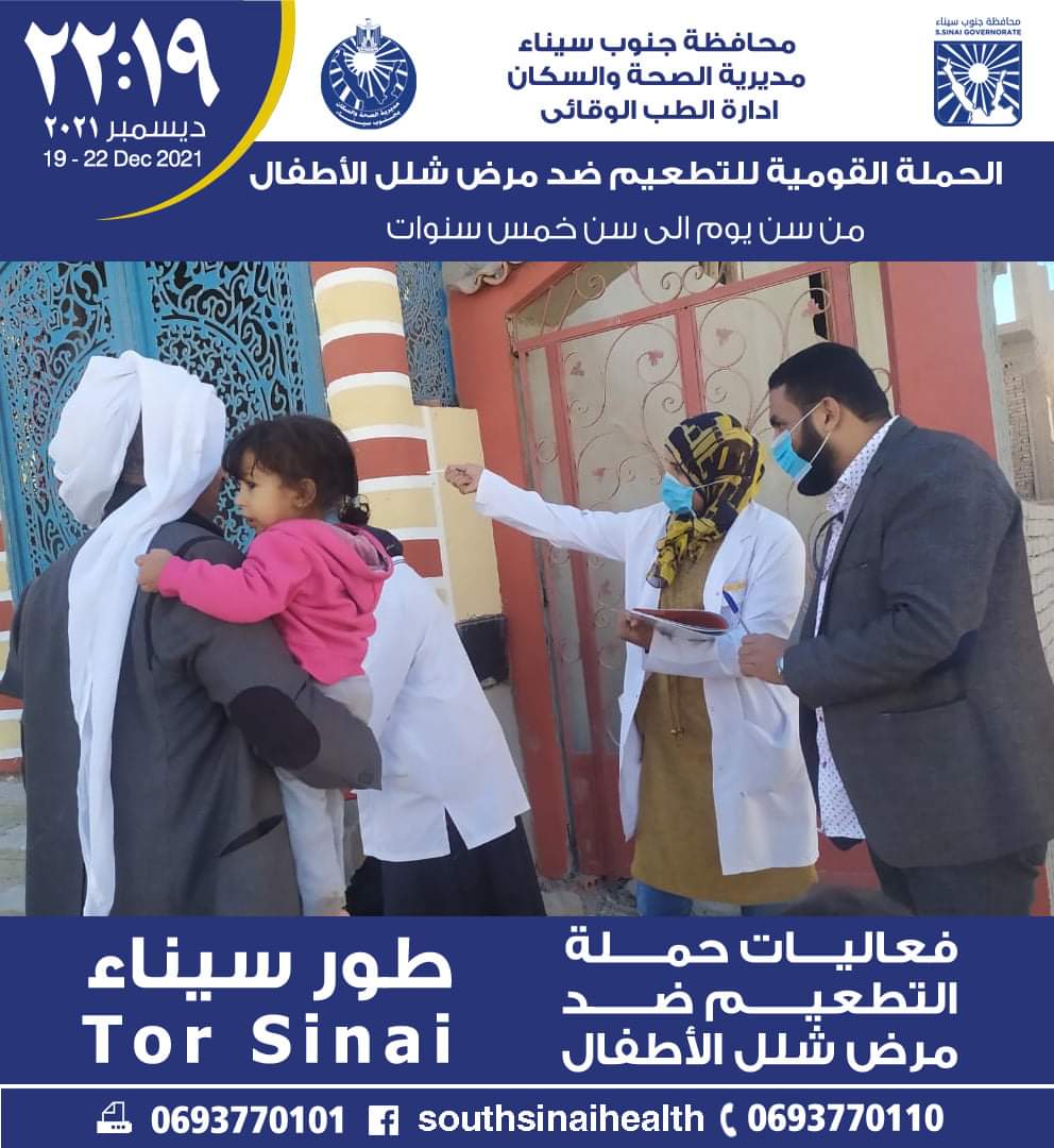 استمرار حملات التطعيم ضد شلل الاطفال بمدن جنوب سيناء رغم الطقس البارد