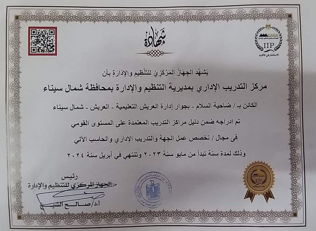 اعتماد مركز التدريب الإداري لمديرية التنظيم والإدارة في شمال سينا