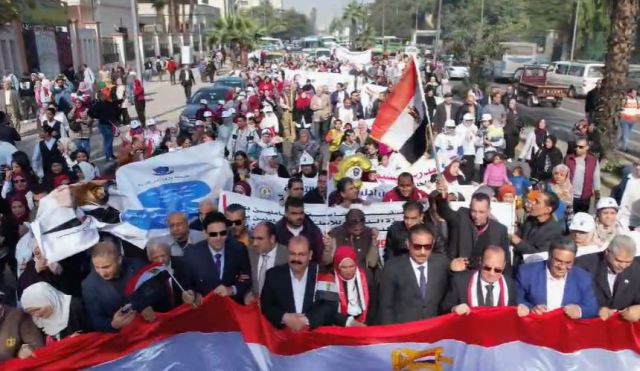 وكيل مديرية تعليم الجيزة يقود مسيرة حاشدة تأييدا للدستور.. بالفيديو