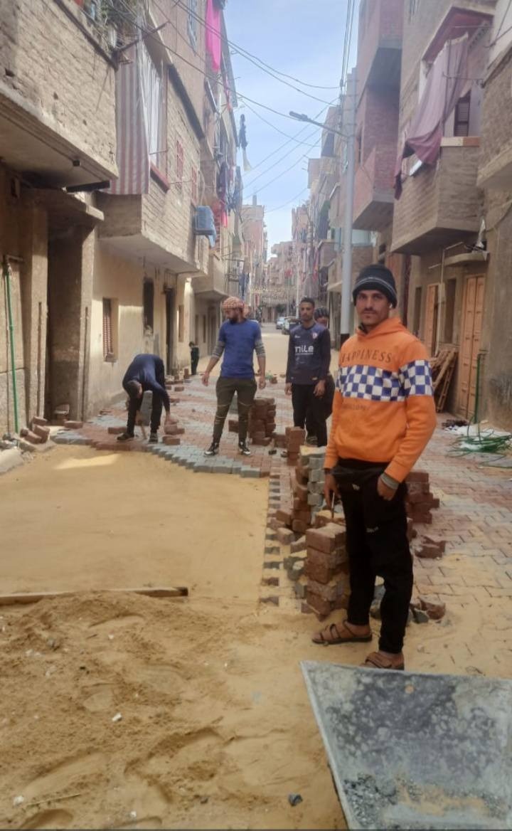 مواصلة تركيب بلاط الإنترلوك بتفرعات شارع الحدادين بمدينة صدفا