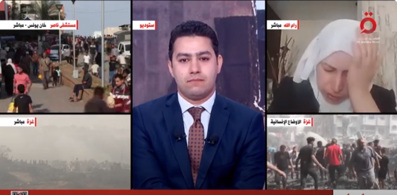 مذيع "القاهرة الإخبارية" يبكي أثناء نعيه أحد أفراد طاقم القناة بقطاع غزة