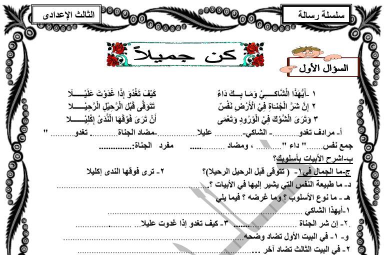 مراجعة النصوص فى اللغة العربية للشهادة الاعدادية