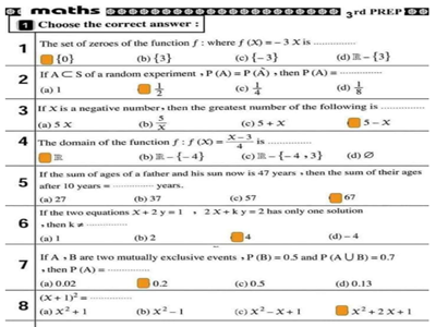 بالإجابات..مراجعة جبر لغات للصف الثالث الإعدادى الترم الثاني