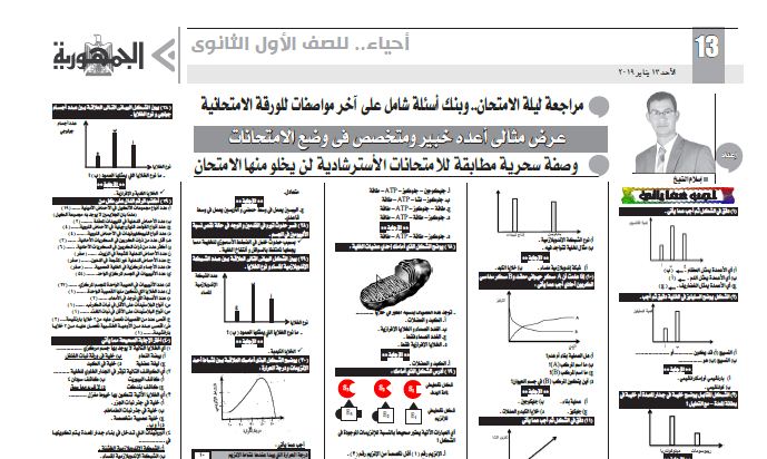 مراجعة ليلة امتحان احياء الصف الأول الثانوى