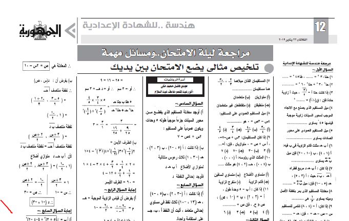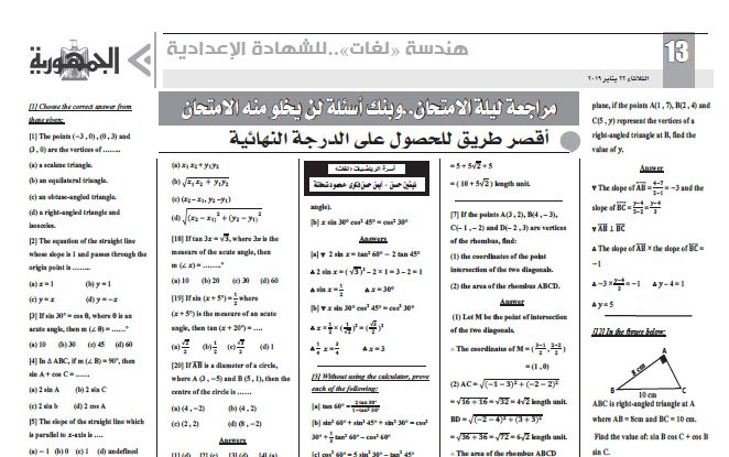 للحصول على 100%.. مراجعة ليلة امتحان الهندسة للشهادة الاعدادية