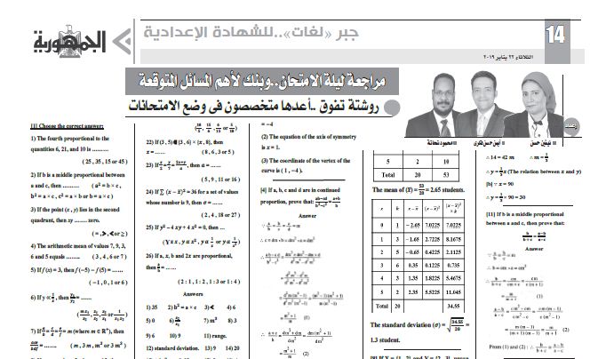 51 سؤالا وإجابتها في مراجعة ليلة امتحان الرياضيات لغات الشهادة الإعدادية
