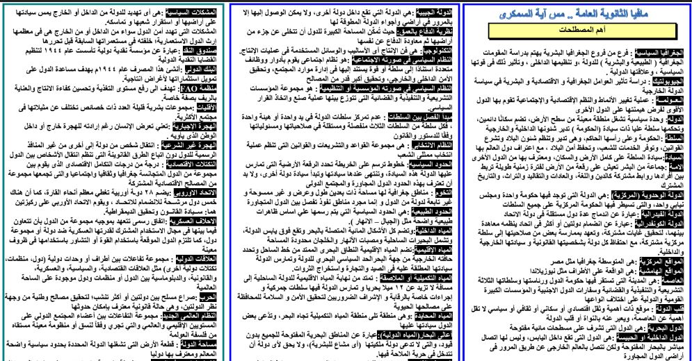 مراجعة ليلة امتحان في الجغرافيا السياسية للثانوية العامة 2019