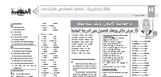 مراجعة ليلة امتحان اللغة الانجليزية للصف السادس الابتدائى
