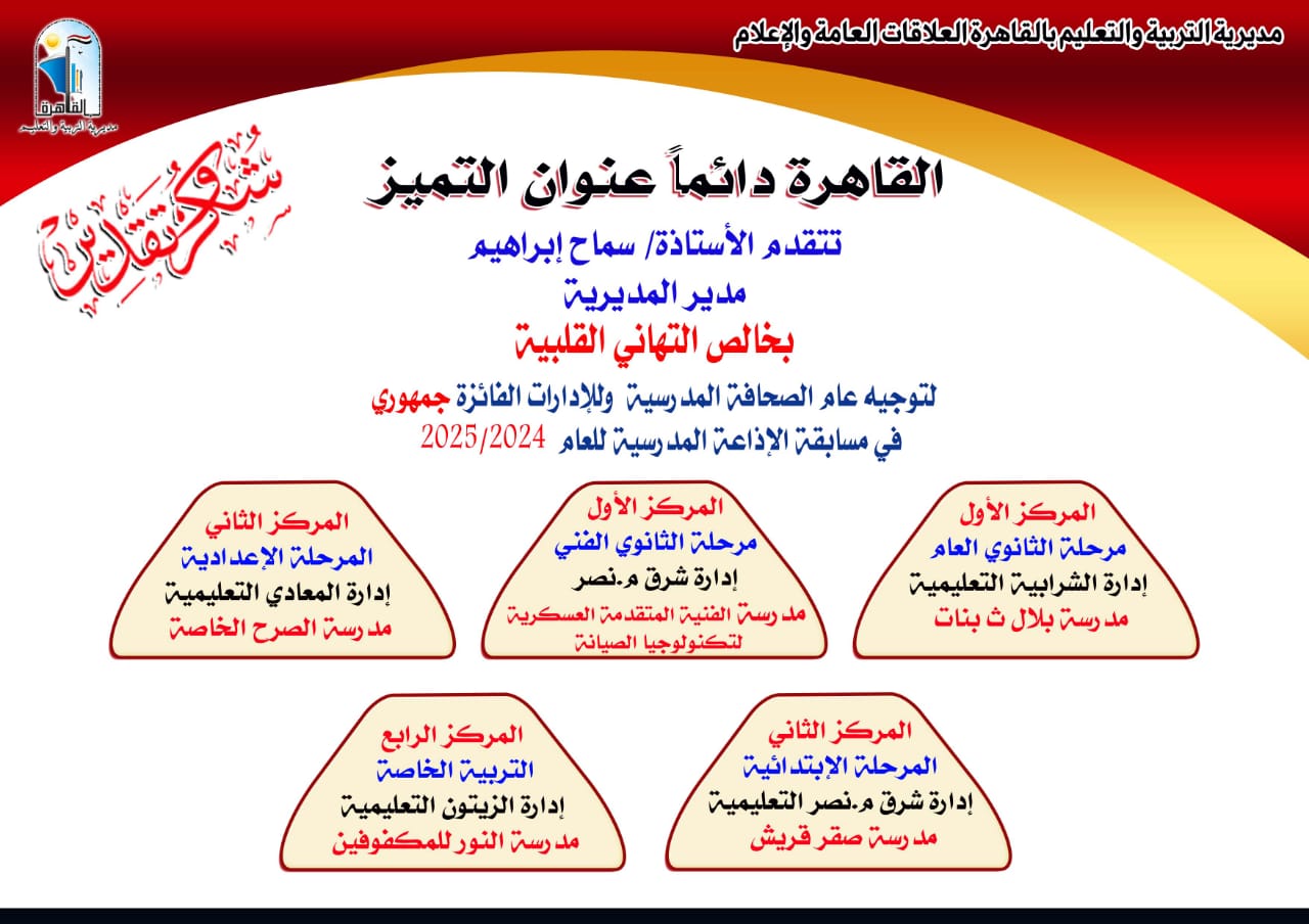 صحافة القاهرة تفوز بخمس مراكز جمهورى فى مسابقة الإذاعة المدرسية