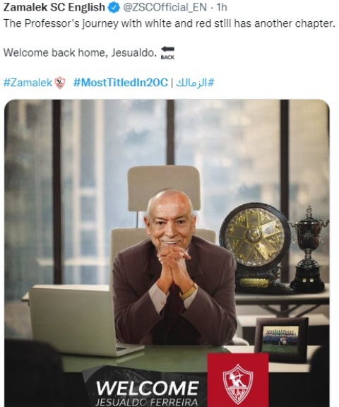 الزمالك لفيريرا : رحلتك معنا لم تنته بعد .. مرحبا بعودتك