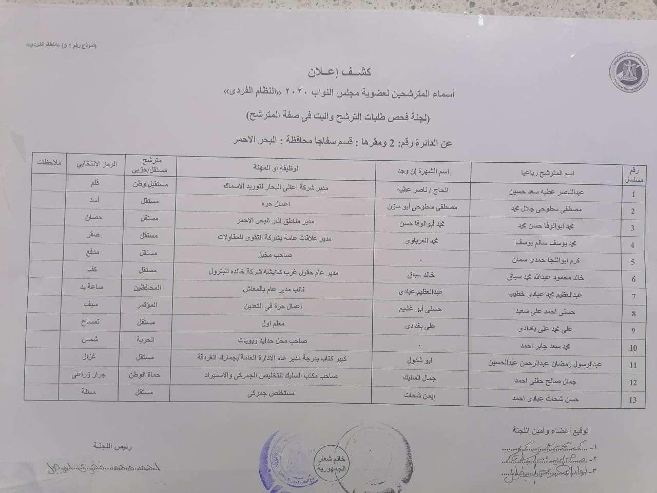 بالمستندات قبول قائمه الوطنيه ورفض قائمتين وأستبعاد 6مرشحين فردى بينهم 2لحزب النور.