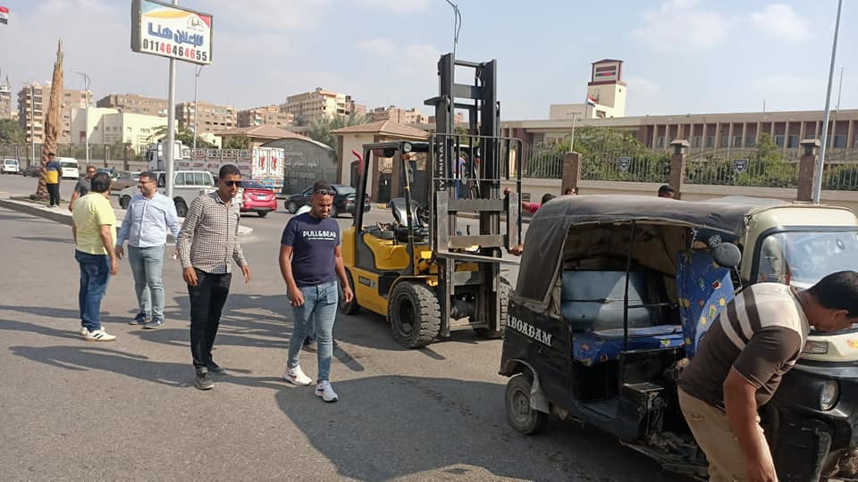 الجيزة تكثف حملاتها لحظر سير مركبات التوك توك بمحور أنور السادات وضبط المخالفين