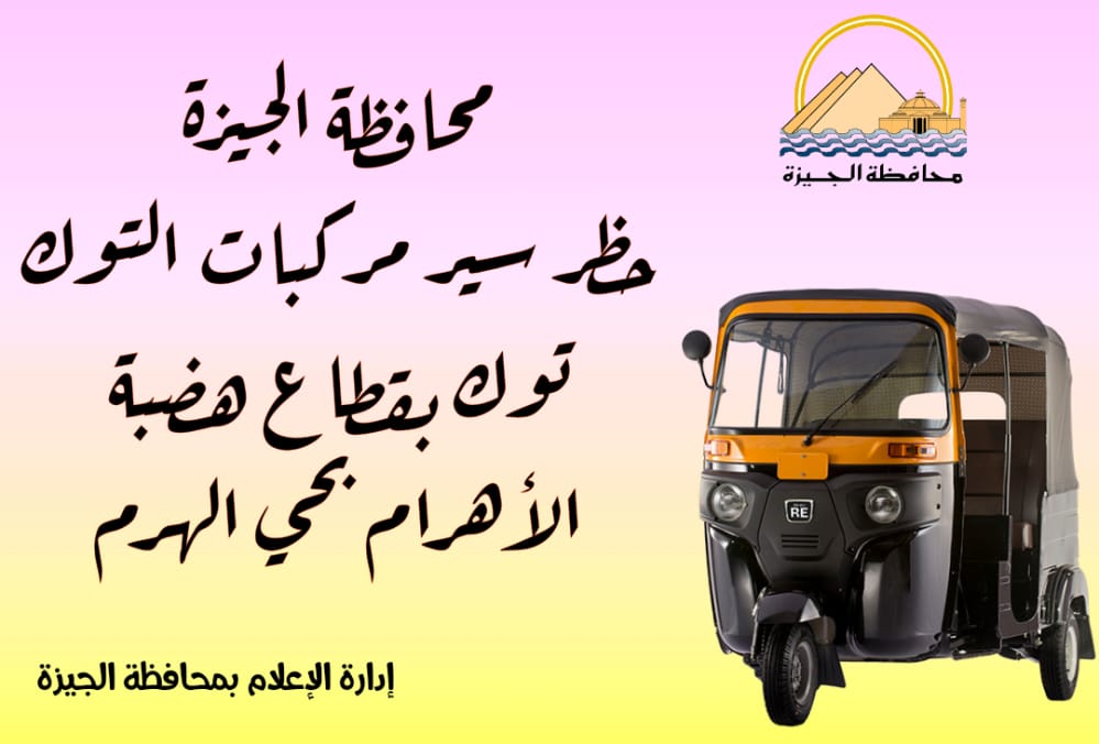 محافظ الجيزة .. حظر سير مركبات التوك توك بقطاع هضبة الأهرام