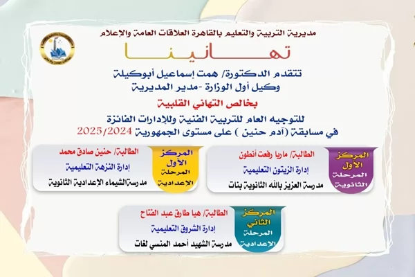 تعليم القاهرة يتألق ويحقق المراكز الأولى في مسابقة 'أدم حنين'
