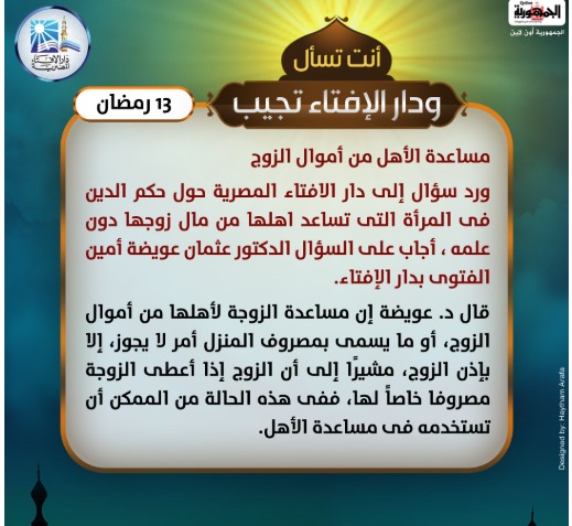 أنتَ تسأل ودارُ الإفتاءِ تُجيب..حكم مساعدة الأهل من أموال الزوج