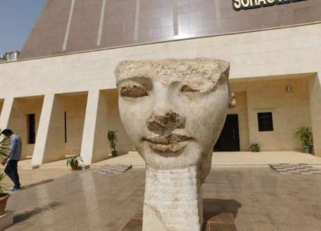 صورة تمثال فرعونى مثبت بمسامير فى متحف آثار سوهاج يثير انتقادات لأثريين ورواد مواقع التواصل الاجتماعى