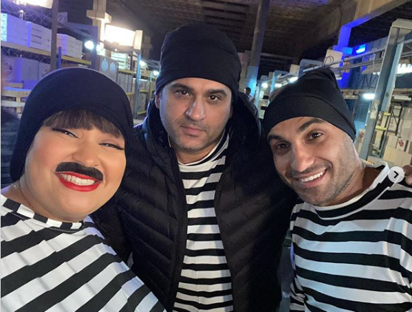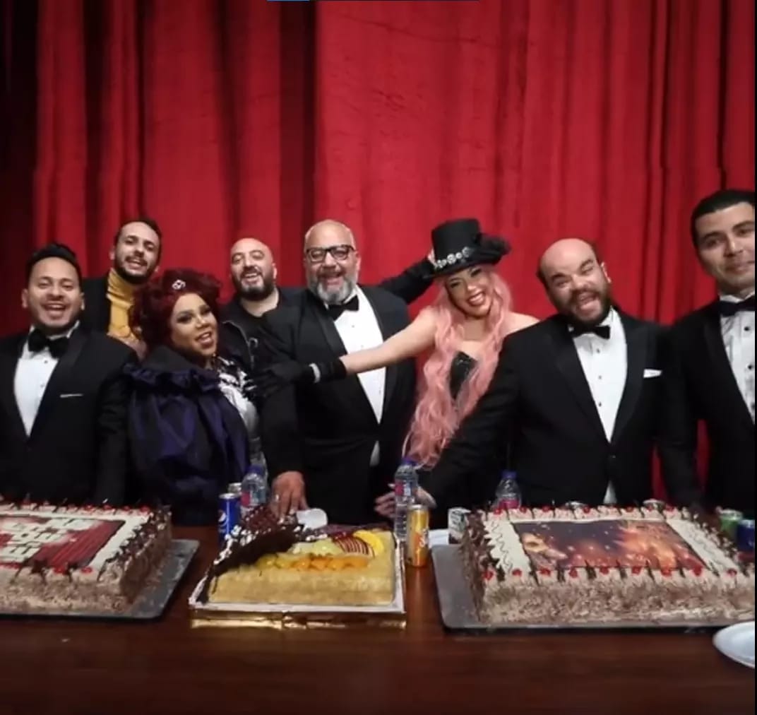 نجمة مسرح مصر بشنب وبملابس "حرامية"برفقة احمد فهمى واكرم حسنى