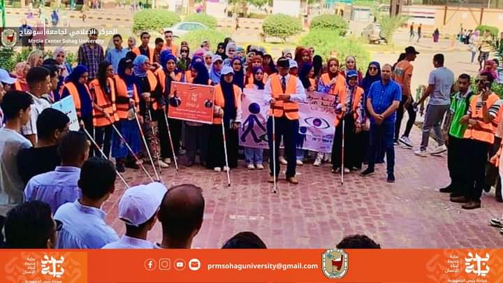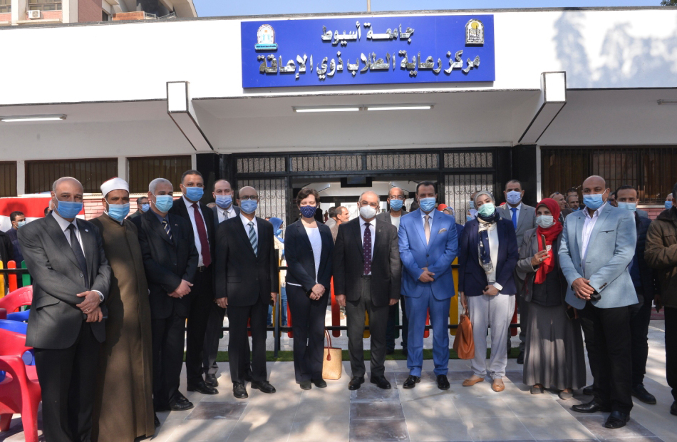 مسيرة طلابية حاشدة يتقدمها رئيس جامعة أسيوط خلال افتتاح مركز رعاية ذوى الإعاقة