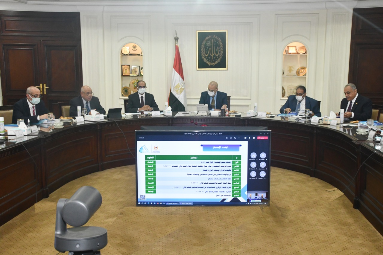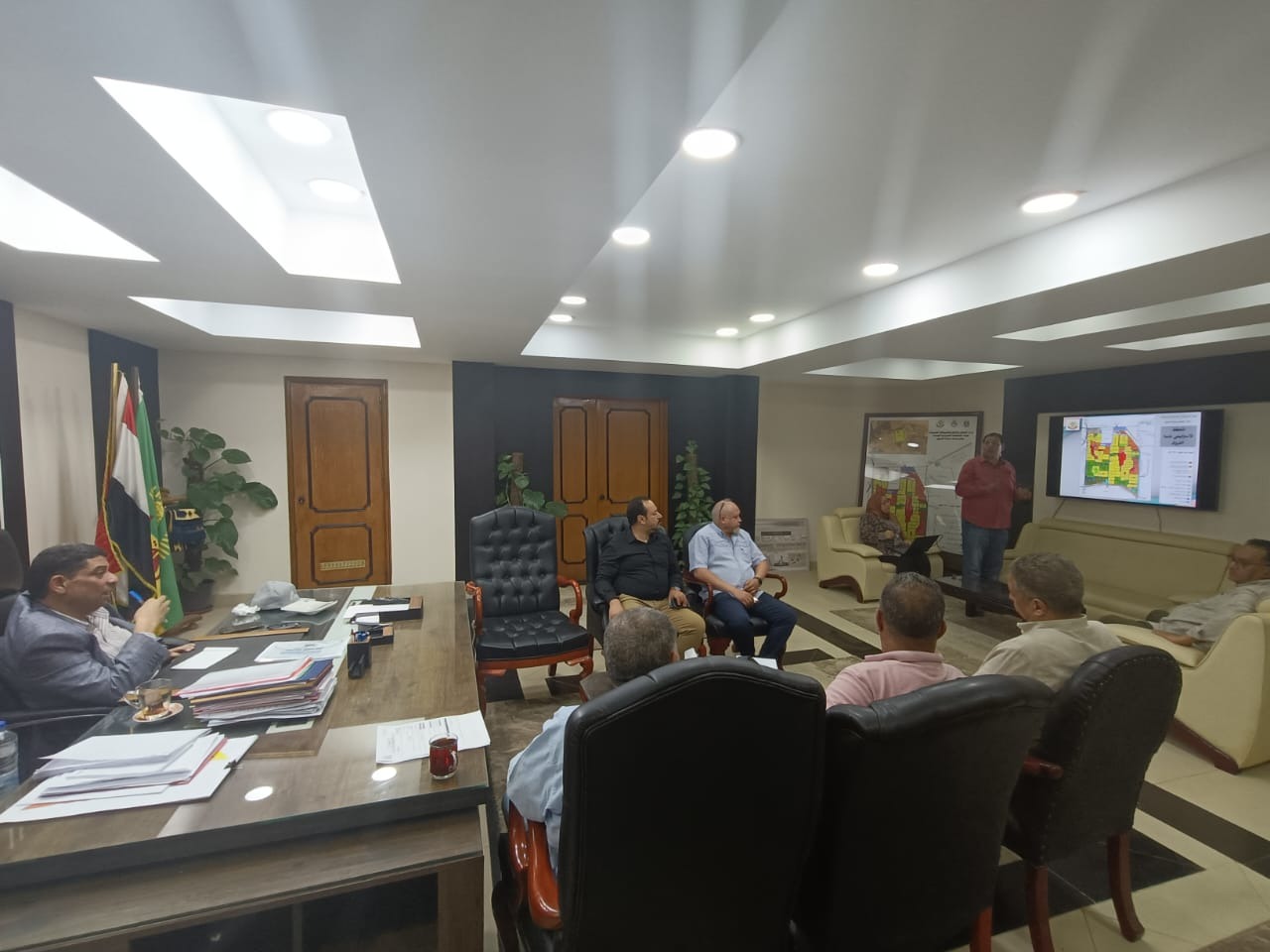 متابعه تنفيذ الخطه الاستثماريه ومشروعات المياه والصرف الصحى على مائده لقاء المحافظ بالقيادات التنفيذية