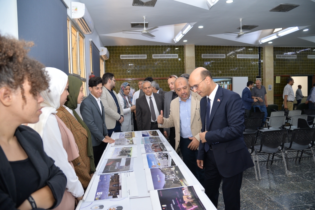 رئيس جامعة قناة السويس يتفقد مشروعات تخرج قسم عمارة بكلية الهندسة