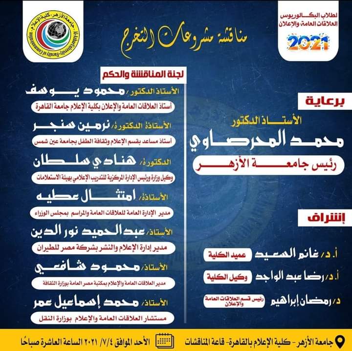 مشروعات تخرج علاقات عامة وإعلان الأزهر في رؤية تحليلية لاستاذ باعلام القاهرة