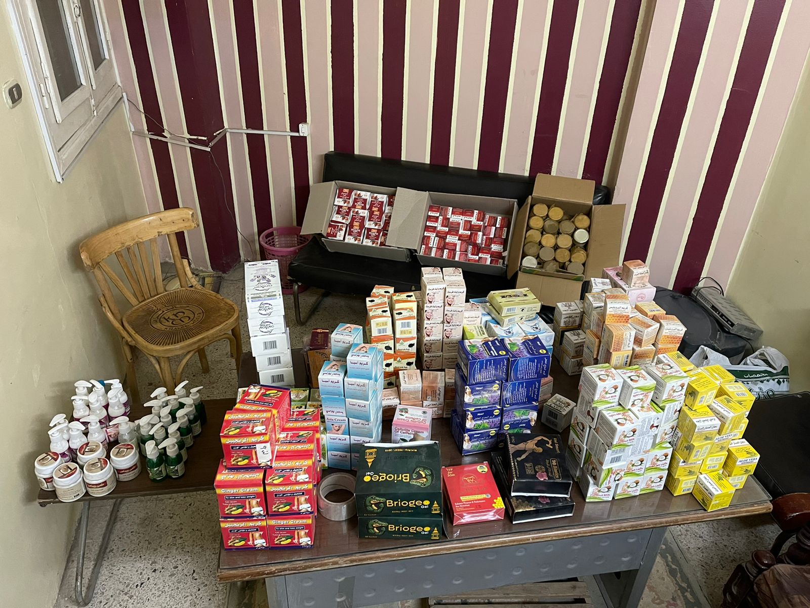 ضبط منشطات مجهولة المصدر وأدوية داخل محل عطارة مشهور فى اسيوط
