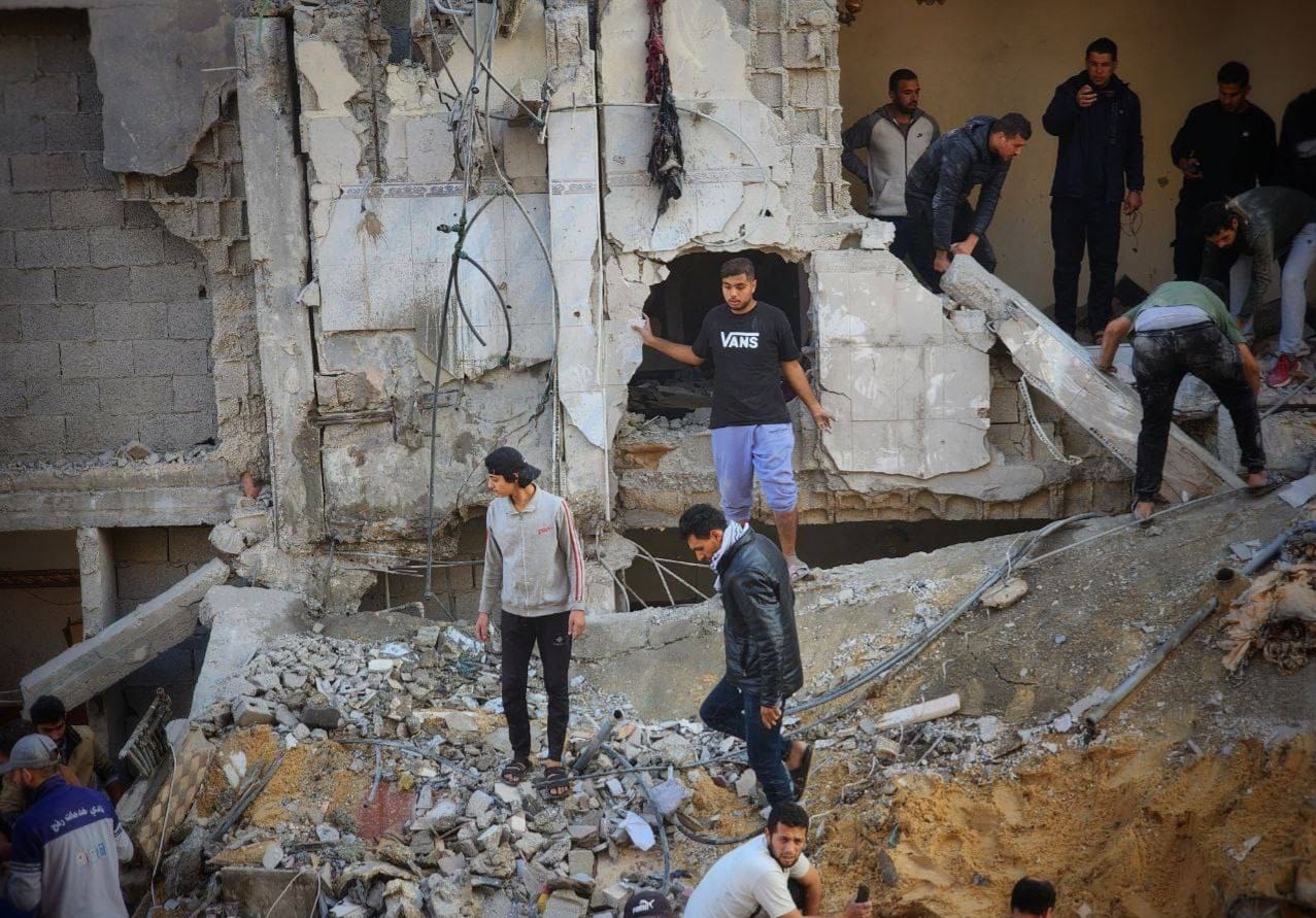 شهداء ومصابون وعالقون تحت الأنقاض جراء قصف طائرات الاحتلال منزلا جنوبي غزة