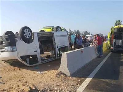 اصابة 15 شخص إثر انقلاب سيارة ميكروباص بطريق مطار أسوان