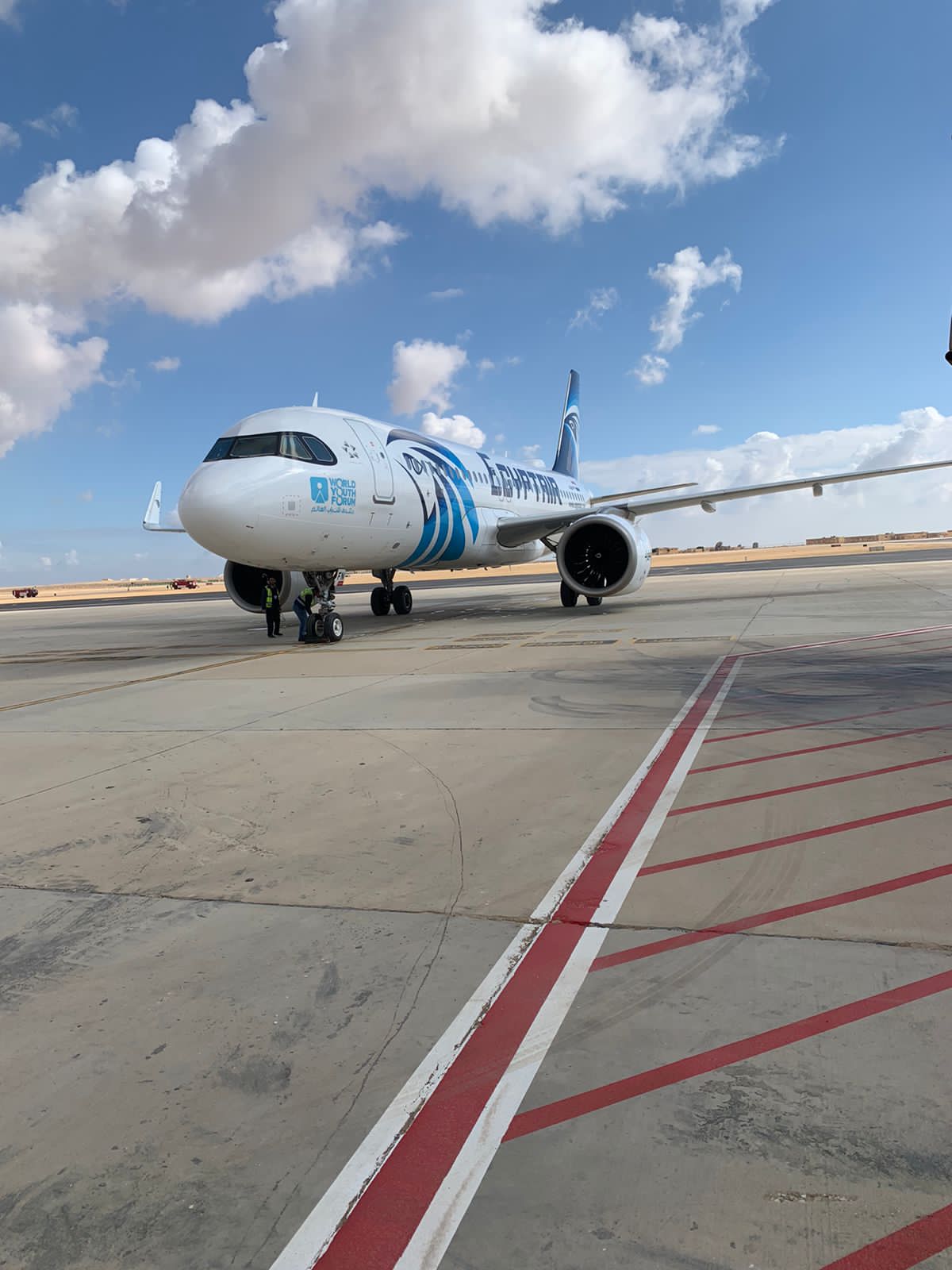 أول رحلة دولية لمصر للطيران من مطار سفنكس الدولي
