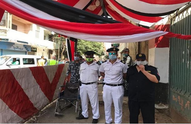 رجال الشرطة يتابعون الإجراءات الاحترازية بانتخابات مجلس الشيوخ .."الكمامة والمطهر أولا"