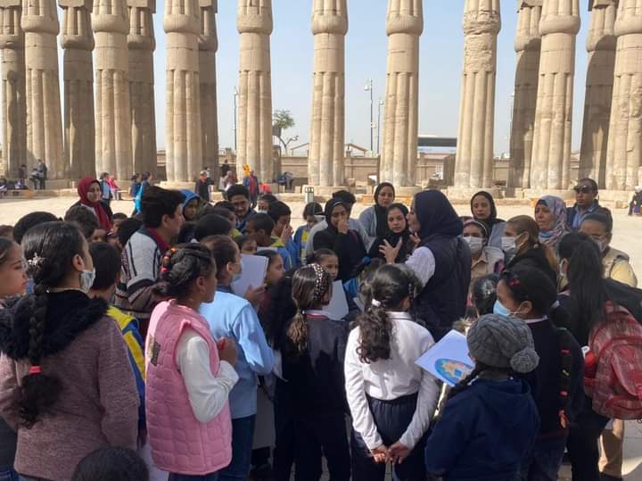 طلاب الفندقية والسياحية بجامعة طيبة فى زيارة علمية لمعبد الأقصر