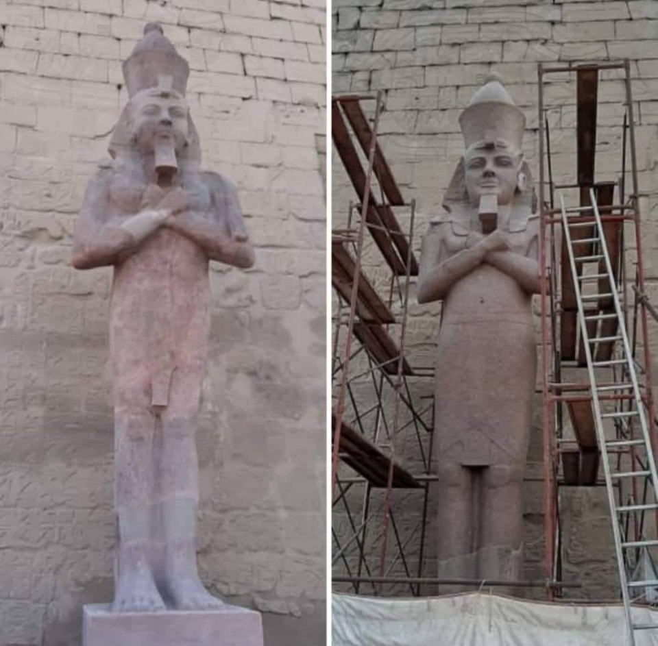ترميم تمثالين جديدين للملك رمسيس الثانى بواجهة معبد الأقصر