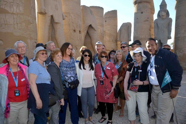 وزيرة السياحة تلتقى مجموعة من السائحين المتواجدين بمعبد الأقصر