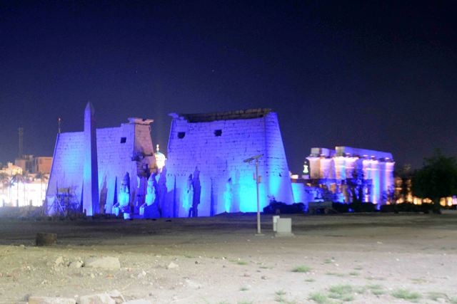معبد الأقصر باللون الأزرق فى اليوم العالمى للتوحد