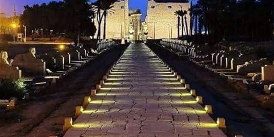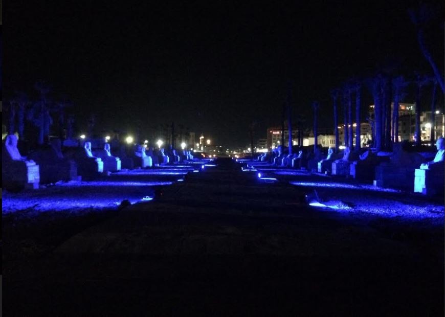 إضاءة معبد الأقصر وطريق الكباش باللون الأزرق