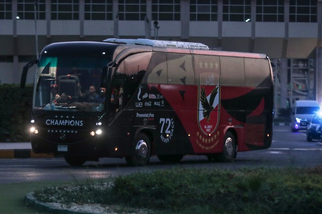 حافلة الأهلي تصل ملعب السلام استعدادا لمواجهة ميدياما بدروى الأبطال