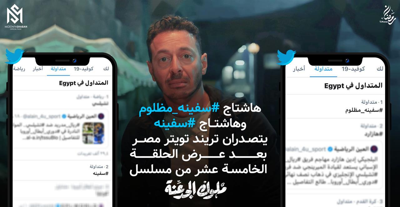 هاشتاج سفينة مظلوم يتصدر تريند تويتر مصر بعد عرض الحلقة 15 من ملوك الجدعنة